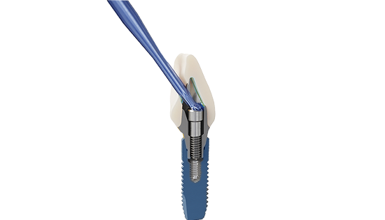 Angling the screw access channel allows the screw access hole to be optimally positioned, improving the esthetics and the installation procedure of the ZimVie CustomBase solution.