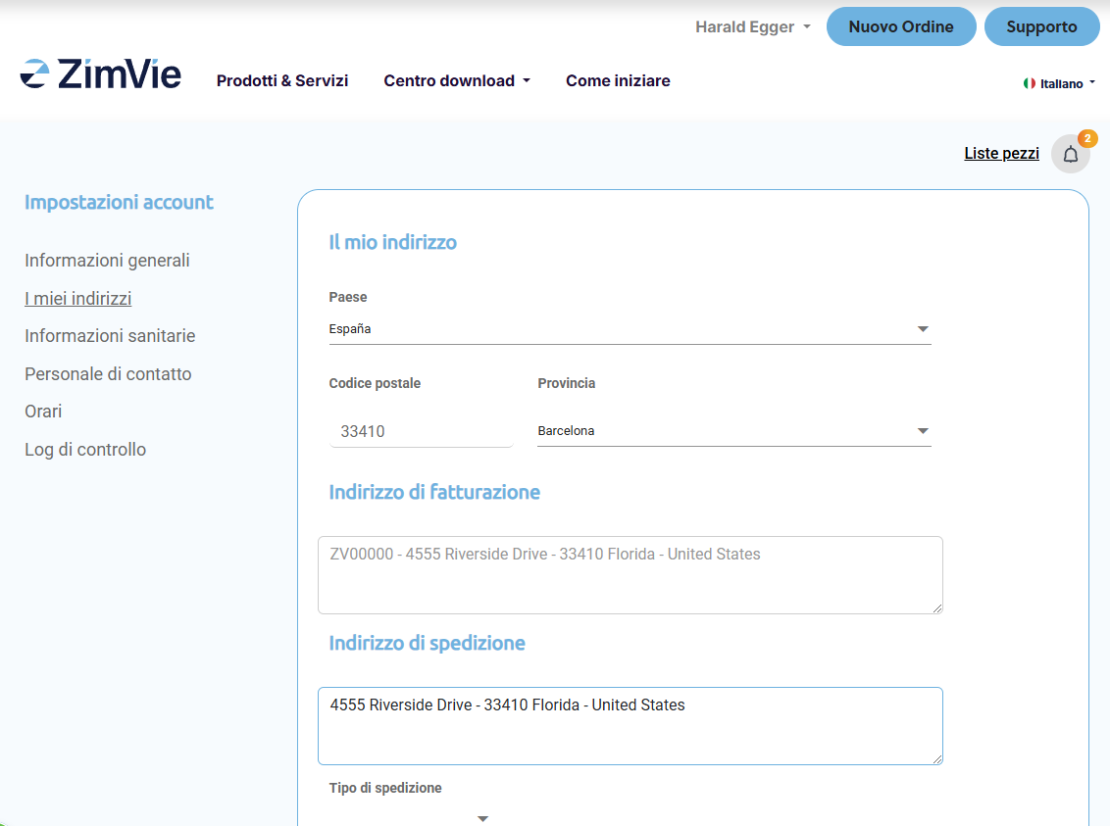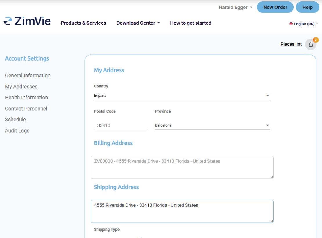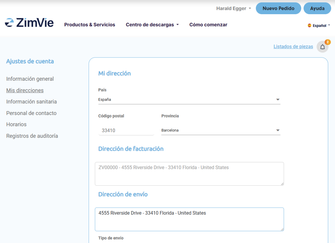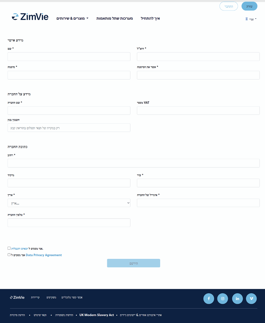 - To become a ZimVie customer you have to provide your information: Name, Email, create a password, and company information (i.e. Company name, company e-mail, phone, identification number, and address)