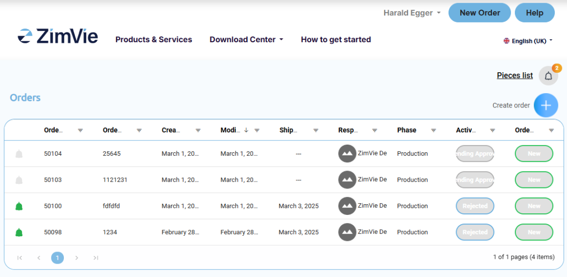 All ZimVie orders are conveniently placed through an "Order over the Web" (OOTW) workflow: