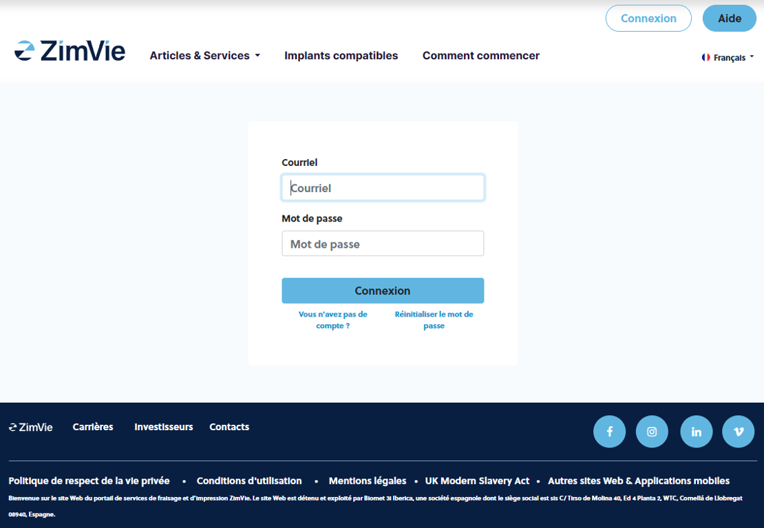 Log in with your existing email and password if you have previously used ZimVie Milling Services