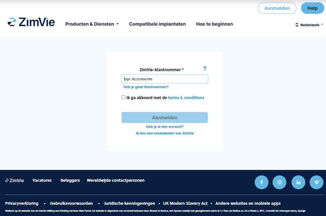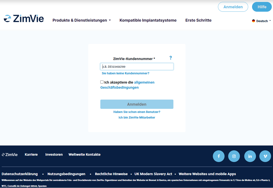 Register as a new customer: If you are not a ZimVie Customer (i.e. you have not used any of our services or purchased any of our products) and you do not have a Customer Number, then we will need to add your information into our internal database before you can log in and create your first project with us!